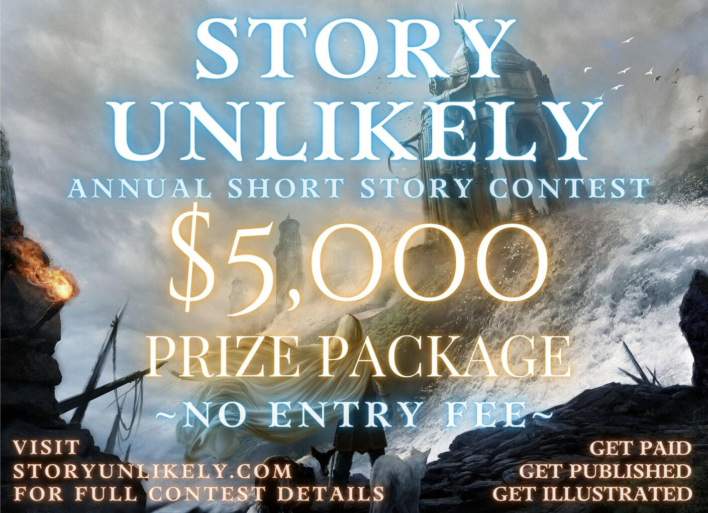 A $3,000 $5,000 prize package will be divvied up like so: $3,000 first place, $1,000 second place, $750 third place, and $250 for our new REPRINT CATEGORY (more info below). The winning story will be featured on Story Unlikely's website, and will be strongly considered for our annual (print) sample magazine, which means a lot of exposure to the winner. All three placing stories (and reprint winner) will be published in the monthly issue, and all three will be illustrated by real, professional, human artists!