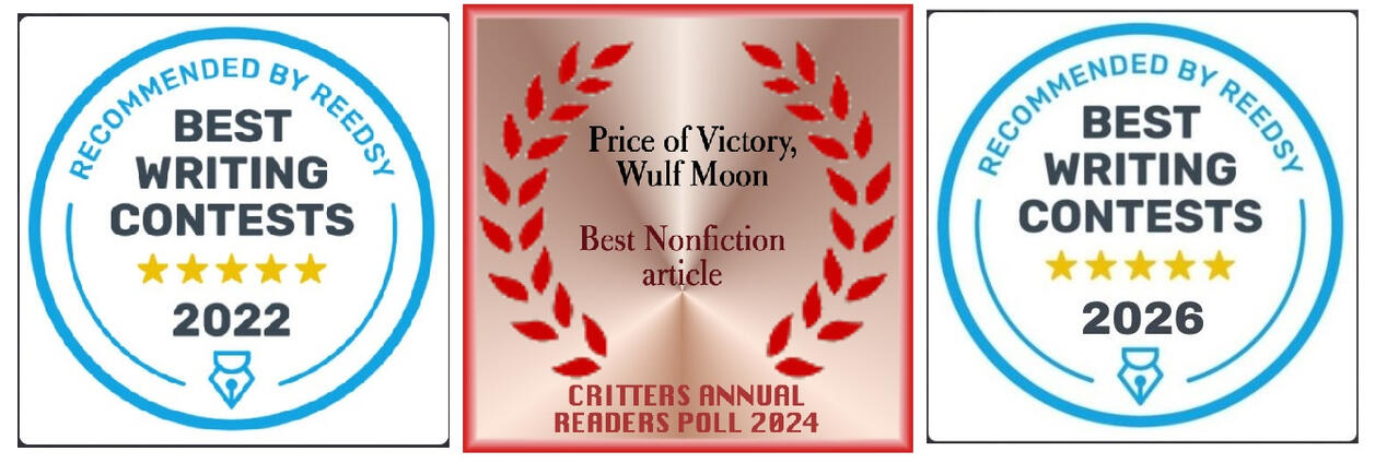 Attention storytellers: we just want good stories! There are no restrictions on genre: fantasy, sci fi, memoir, fiction/nonfiction, etc - we don't care as long as it's written and told with quality and care. The story itself cannot exceed 7,000 words (except for WRITER level Members, who get a bonus 3,000 words added!). There are no restrictions on age or location of participant, and no need to ask us for permission to participate in the contest - just follow the guidelines below.